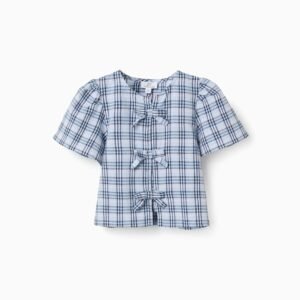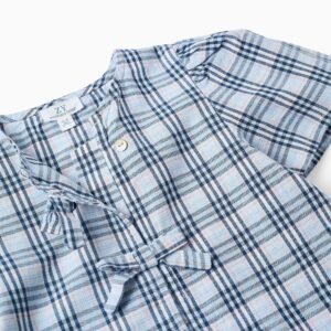 Esta blusa de manga corta es la elección perfecta para el día a día de tu niña. Confeccionada en algodón suave, presenta un estampado a cuadros en tonos azul oscuro y claro, blanco y naranja, que le dan un toque elegante. El tejido ligero permite a tu niña moverse con libertad, tanto si está jugando con sus amigos como si está en un evento familiar.