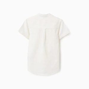 Camisa de manga corta blanca para niño, fabricada en una mezcla premium de lino y algodón. Transpirable y suave, es perfecta para salidas familiares o ocasiones especiales. Con un diseño práctico, es fácil de combinar con varios pantalones y bermudas, para looks frescos y cómodos!