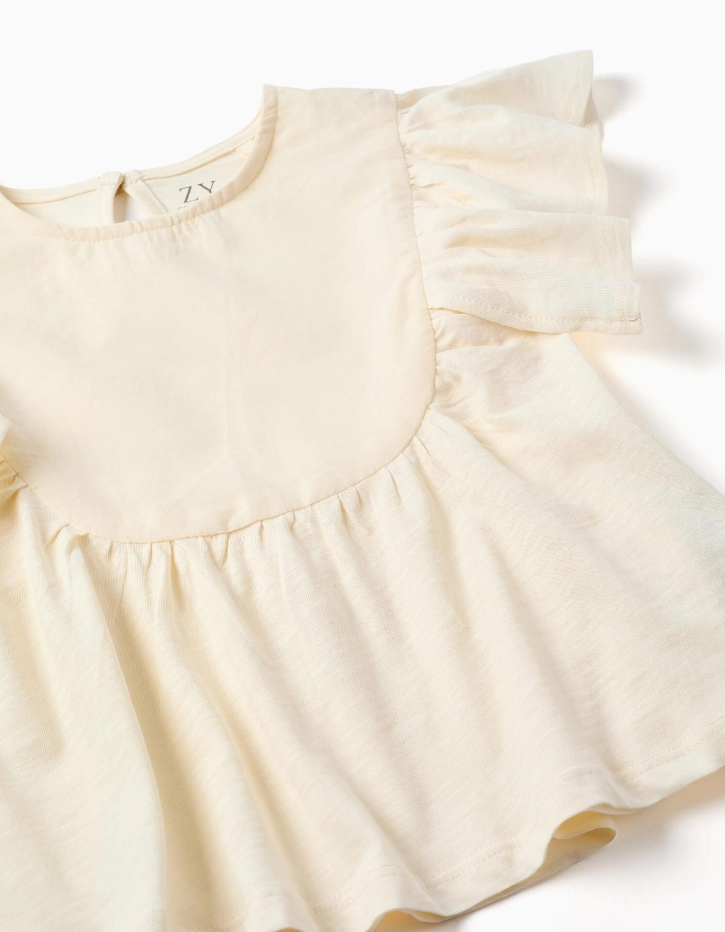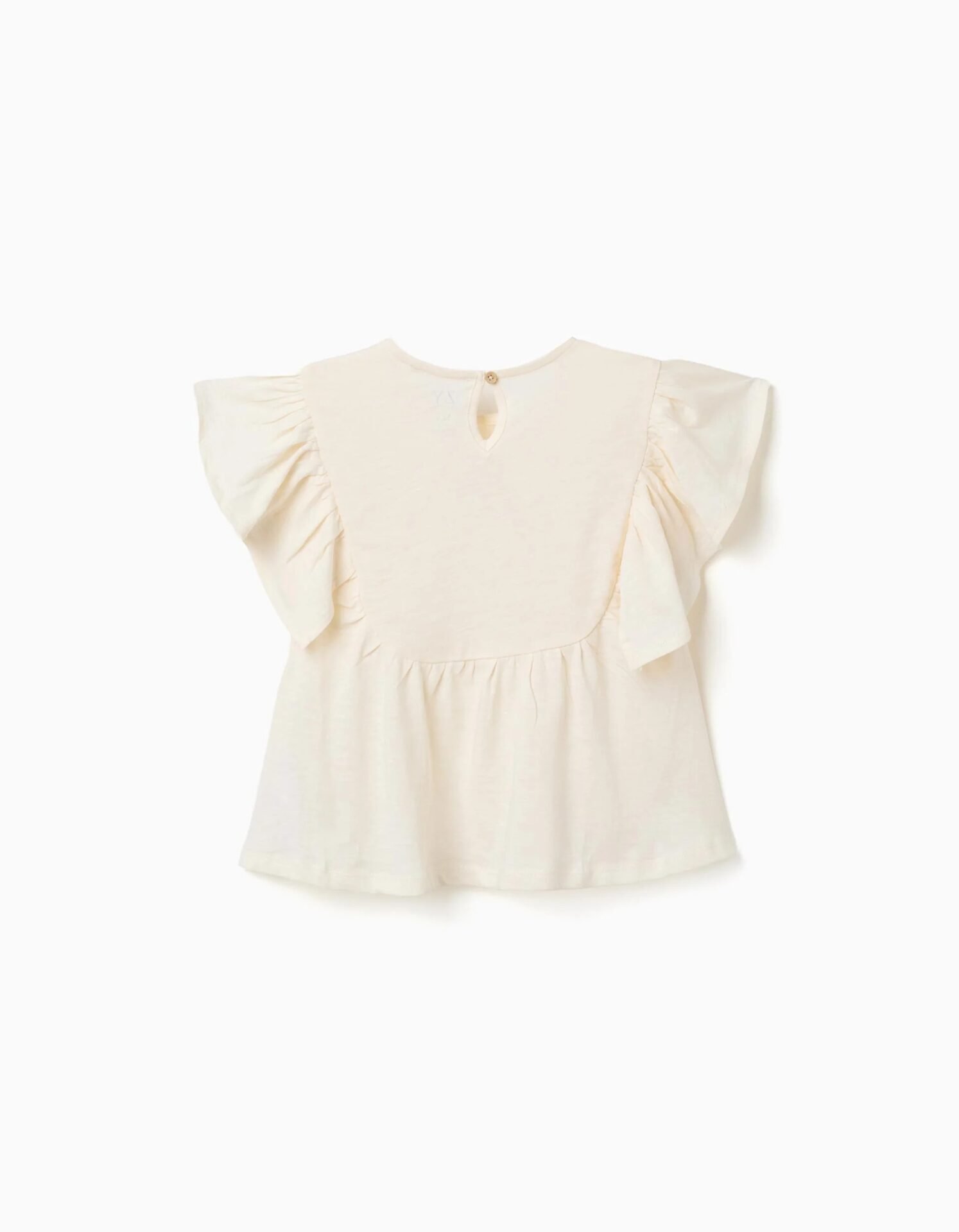 Esta camiseta beige claro para niña es una opción ideal para los días más cálidos. Su tejido suave y transpirable mantiene a tu niña fresca y contenta durante todo el día.