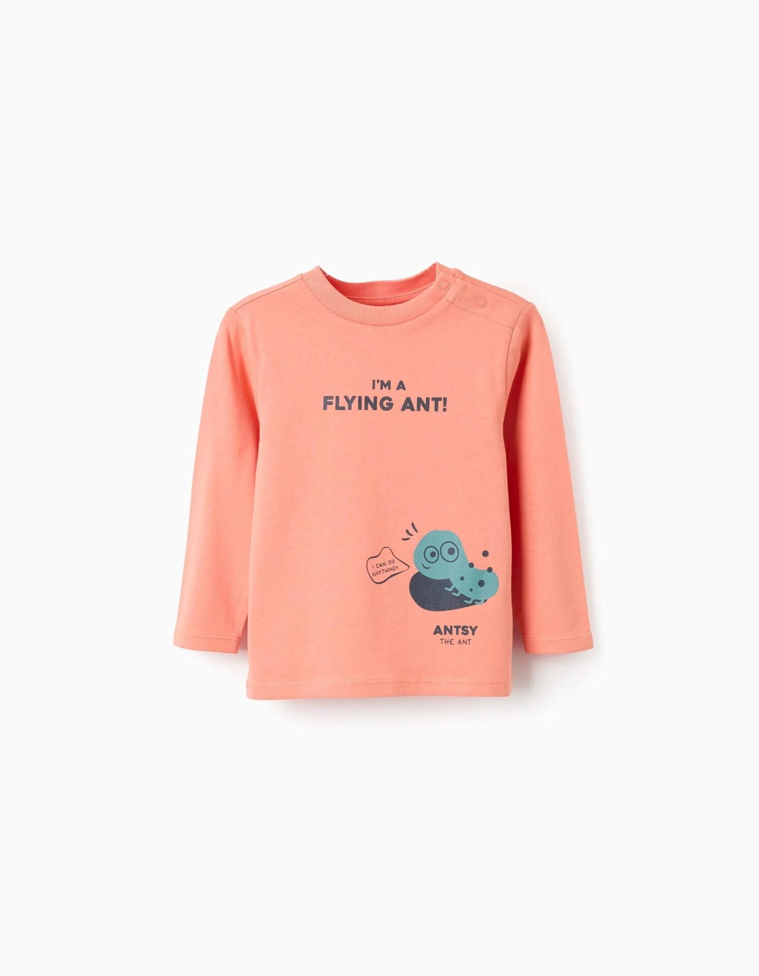 Camiseta coral de manga larga para bebé niño, 100% algodón. Divertido estampado de hormigas en la parte delantera. Botones automáticos en el hombro para facilitar su colocación. Etiqueta interior impresa para no irritar la piel. Un estampado divertido para el día a día. We Care: artículo con certificación Oeko-Tex Standard 100, que garantiza la ausencia de sustancias nocivas o irritantes para la piel.