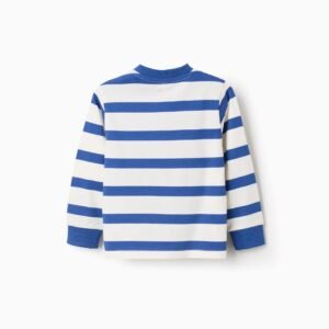 Camiseta de manga larga a rayas blancas y azules para bebé niño, 100% algodón. Estampado frontal de Mickey. Botones a presión en el hombro para vestir con facilidad. Puños acanalados para un ajuste perfecto. Etiqueta interior estampada para no irritar la piel. ¡Una camiseta juvenil con el sello de Disney!