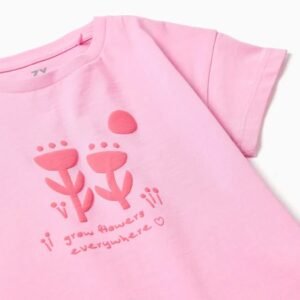 Camiseta de algodón con estampado floral en relieve para niña, rosa – ZIPPY