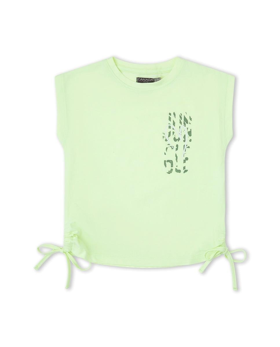 Camiseta de niña. cuello redondo ribeteado.