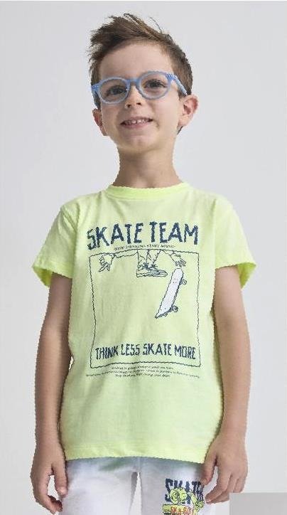 CAMISETA DE NIÑO MANGA CORTA DE CUELLO REDONDO RIBETEADO