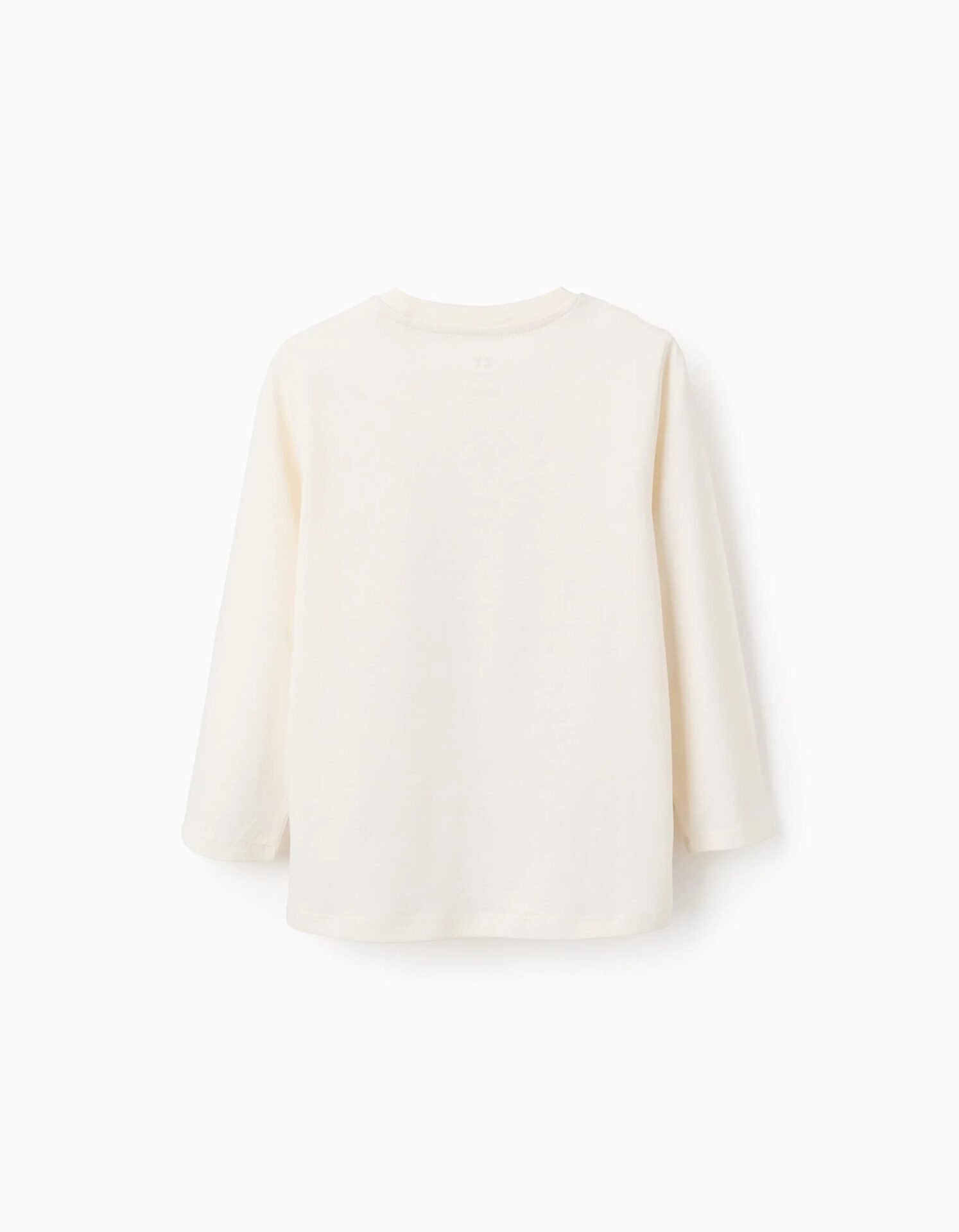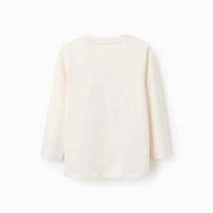 Camiseta de manga larga para bebé niño, 100% algodón, con estampado frontal y detalles en relieve. Etiqueta interior impresa para no irritar la piel. ¡Una opción perfecta para el entretiempo! We Care: artículo con certificación Oeko-Tex Standard 100, que garantiza la ausencia de sustancias nocivas o irritantes para la piel.