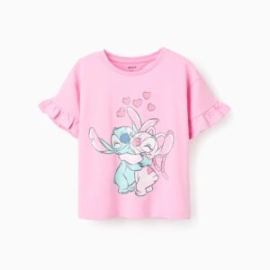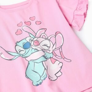 Cuenta con un estampado frontal de Stitch y Angel, que añade un toque divertido a cualquier conjunto. Ya sea para jugar con sus amigos o para ir al colegio, ¡esta camiseta es la elección perfecta para cualquier ocasión!