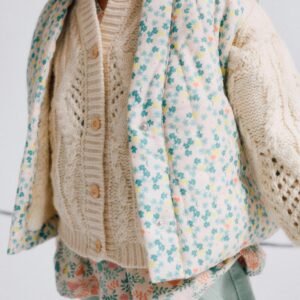 La abertura cuenta con dos botones automáticos en la parte delantera, lo que lo hace práctico para el uso diario y cómodamente ajustable. Perfecto para salidas al parque o fiestas de cumpleaños, este chaleco combina a la perfección con diversos conjuntos, aportando versatilidad y un toque de encanto al armario de tu hija.