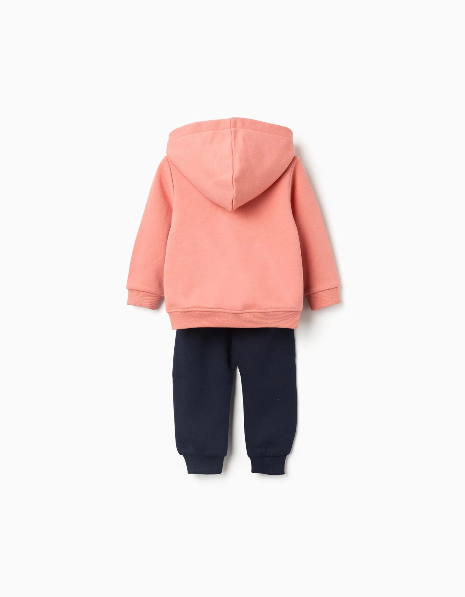 Conjunto de dos piezas perchadas para bebé niño, en mezcla de algodón, para un tacto suave y cómodo. Incluye una chaqueta naranja con capucha y bolsillo canguro; con estampado de un caracol en el pecho; se abrocha con cremallera. También incluye un par de pantalones de chándal azul oscuro, con cintura elástica y cordón. Ambas piezas con extremos acanalados, para un ajuste perfecto. ¡Un conjunto cómodo e ideal para actividades deportivas en los días más frescos! We Care: Artículo certificado Oeko-Tex Standard 100, que garantiza la ausencia de sustancias nocivas o irritantes para la piel.