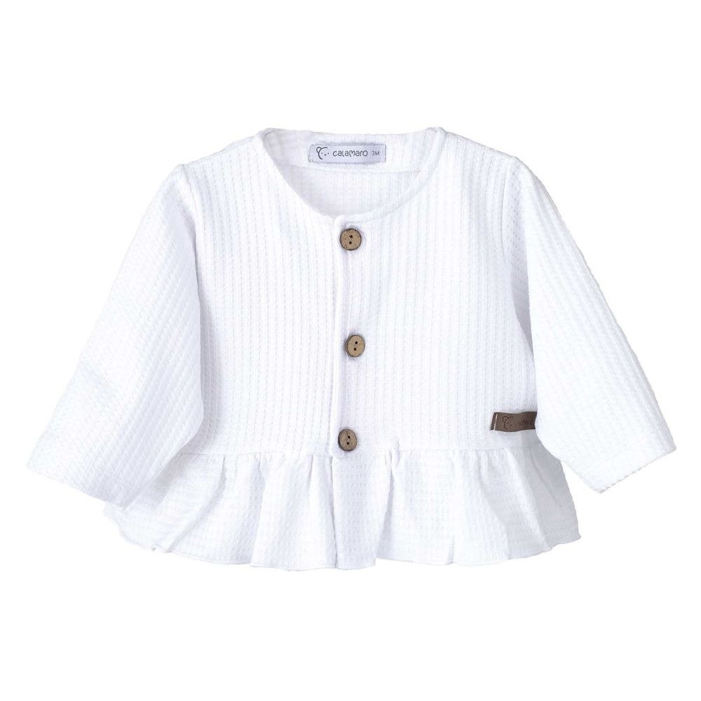Chaqueta blanca c cuello redondo, botones de madera.