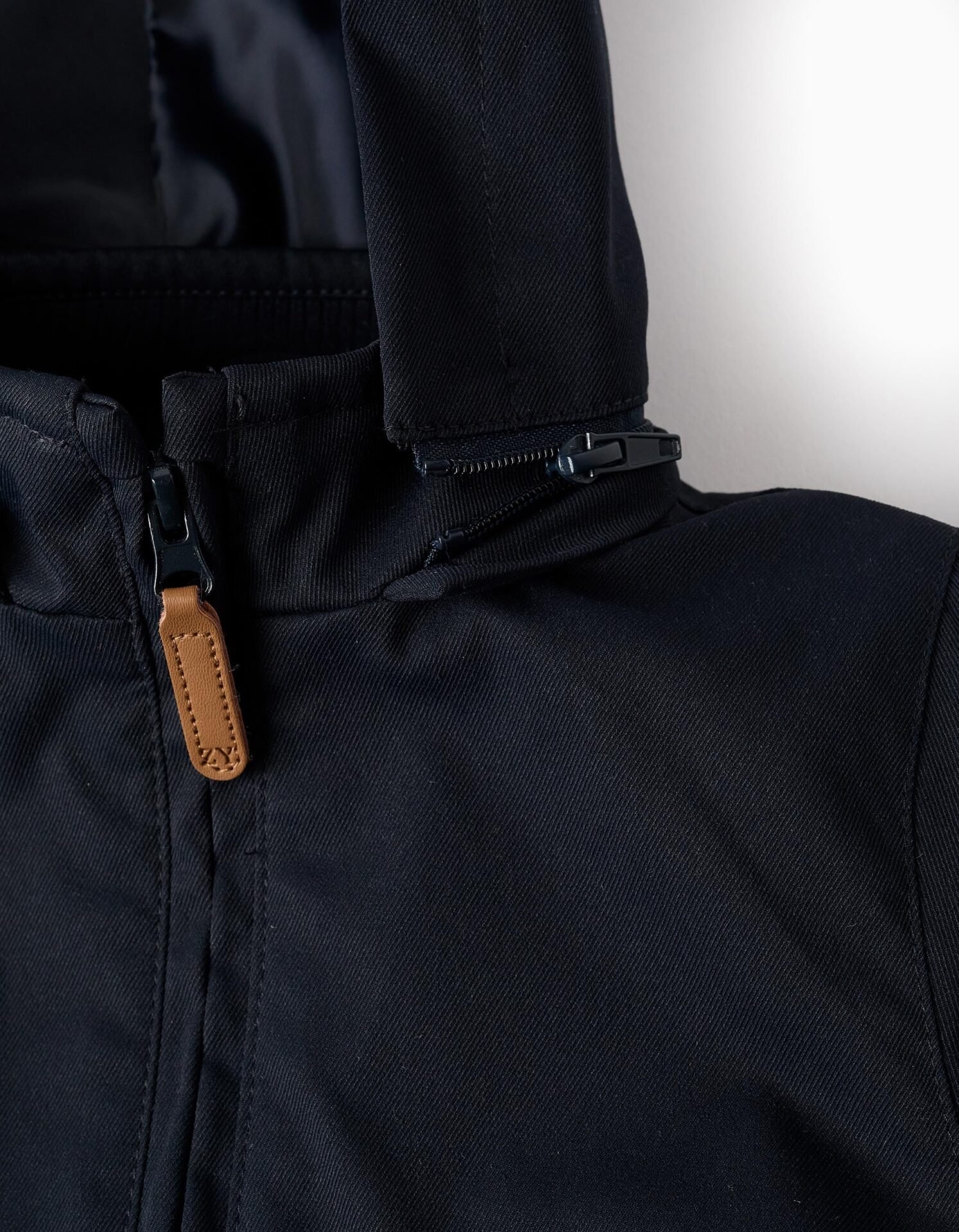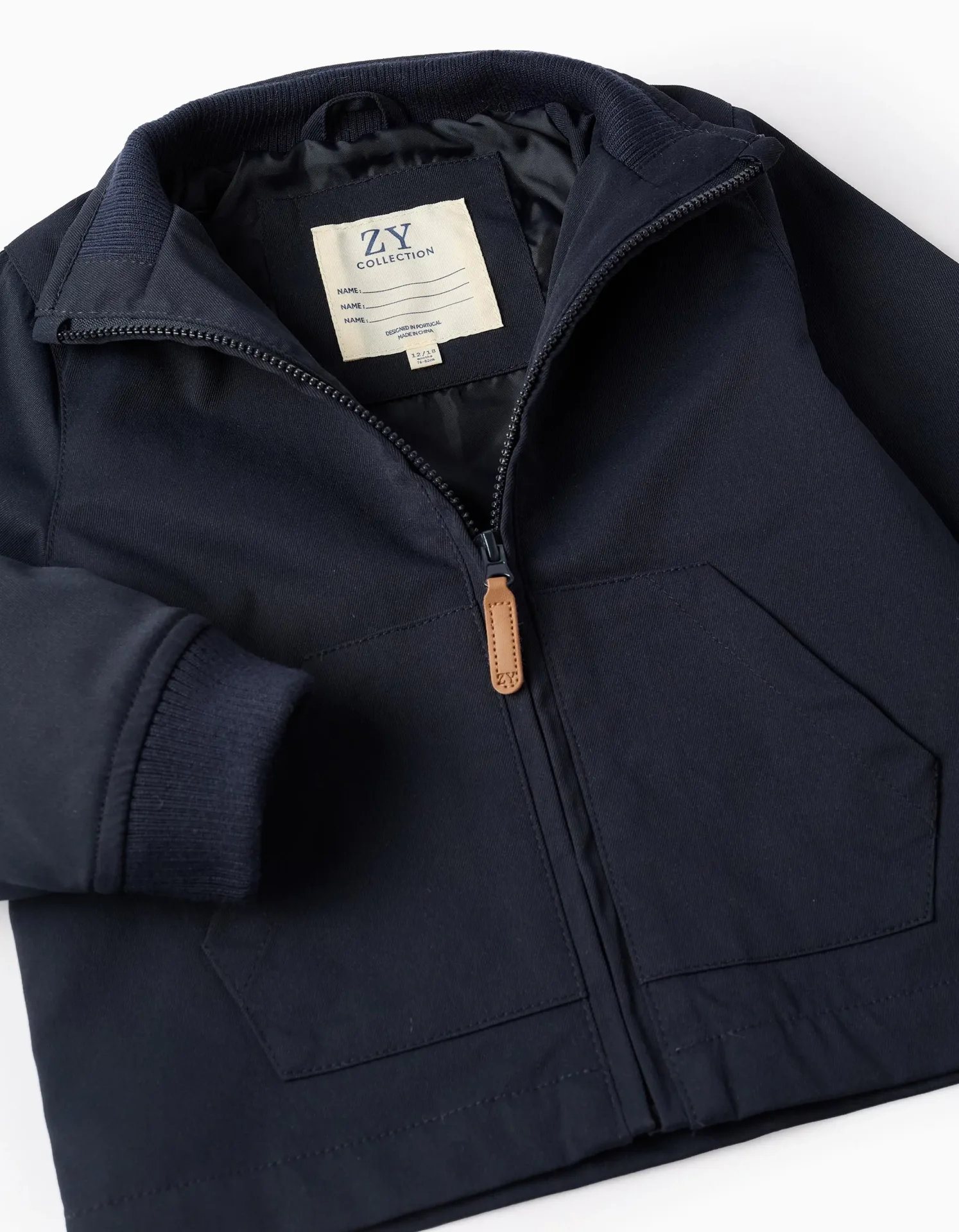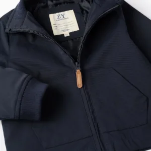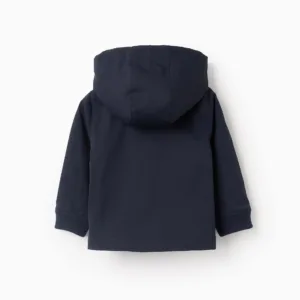 Chaqueta azul marino con capucha desmontable para bebé niño. Bolsillos canguro. Cierre de cremallera con tirador a contraste. Cuello interior y puños acanalados para un ajuste perfecto. Forro de satén para mayor comodidad. Etiqueta interior para poner la identificación del niño. ¡Ideal para entretiempo!