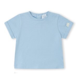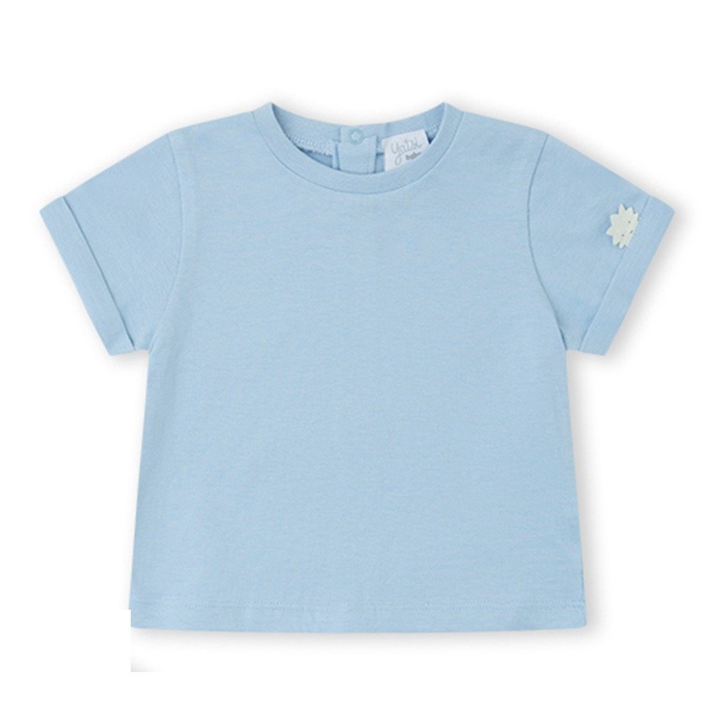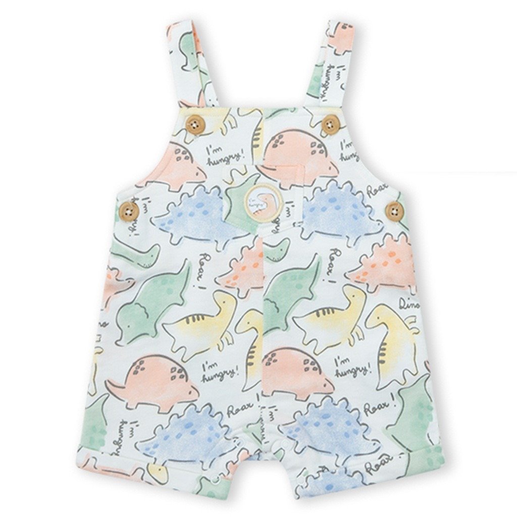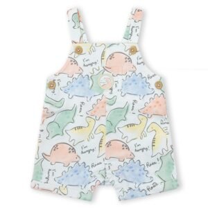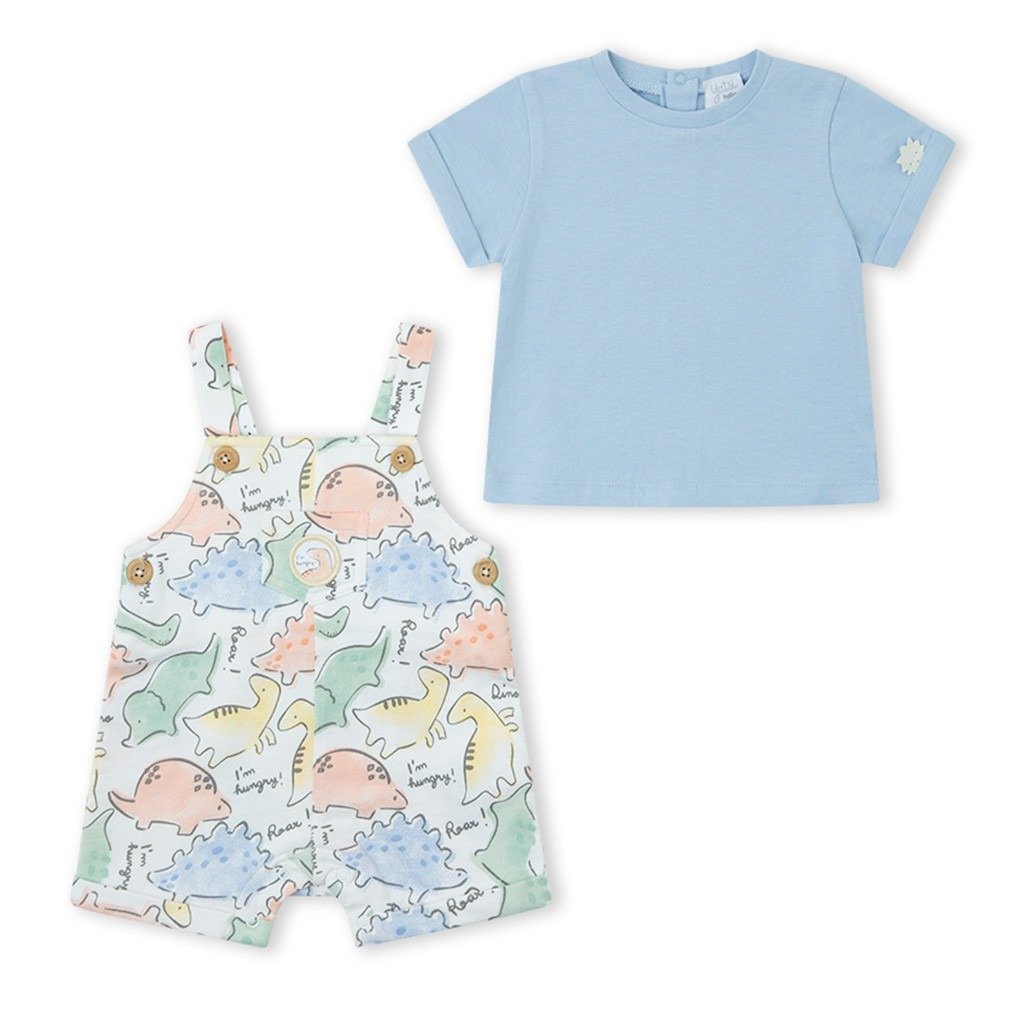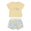 Conjunto para bebé de tejido de algodón compuesto por camiseta de manga corta y peto estampado. De la marca Yatsi.