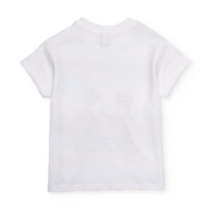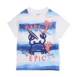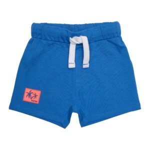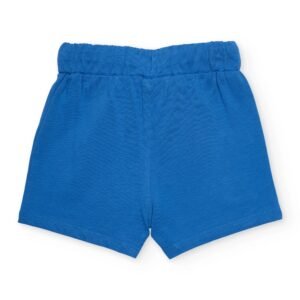 Conjunto de niño en color azul, formado por una camiseta de manga corta y un short a juego. La camiseta destaca por su estampado de franjas en tonos azules y un divertido dibujo frontal que aporta un aire fresco y dinámico. Presenta un tacto suave y cómodo, ideal para acompañar al pequeño en su día a día. El short, confeccionado en un tejido ligero y agradable, incluye cintura elástica con cordón decorativo, lo que garantiza un ajuste confortable durante el movimiento. Un conjunto práctico y versátil, perfecto para crear looks cómodos sin renunciar al estilo infantil.
