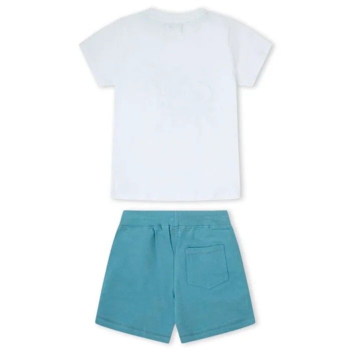 Conjunto de niño. Camiseta de manga corta con dibujo delante y bermuda de punto.