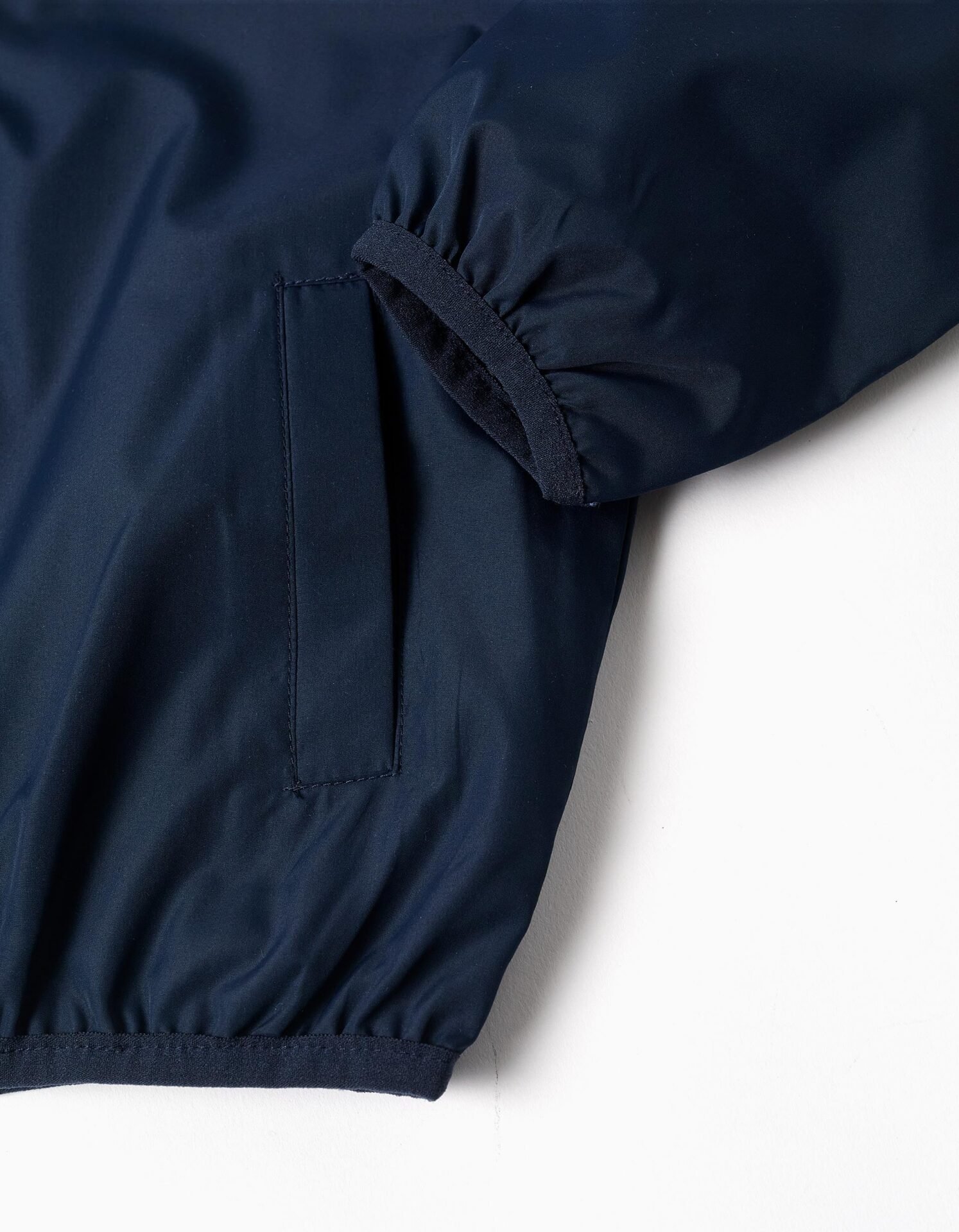 Descubre esta chaqueta cortavientos con capucha azul oscuro, perfecta para las aventuras diarias de tu niño. Con un diseño ligero y funcional, esta prenda destaca por su comodidad y su mezcla de tejidos de alta calidad.
