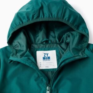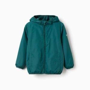 Descubre esta chaqueta cortavientos con capucha verde, perfecta para las aventuras diarias de tu niño. Con un diseño ligero y funcional, esta prenda destaca por su comodidad y su mezcla de tejidos de alta calidad.