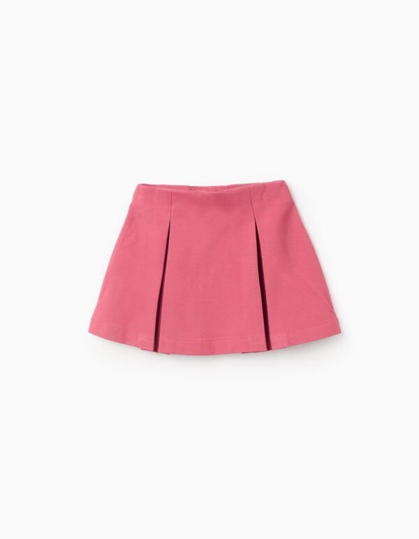 Falda plisada rosa para niña, en punto Roma. Cintura elástica y cómoda, ajustable en el interior con elásticos y botones. ¡Para usar como uniforme escolar y mucho más!