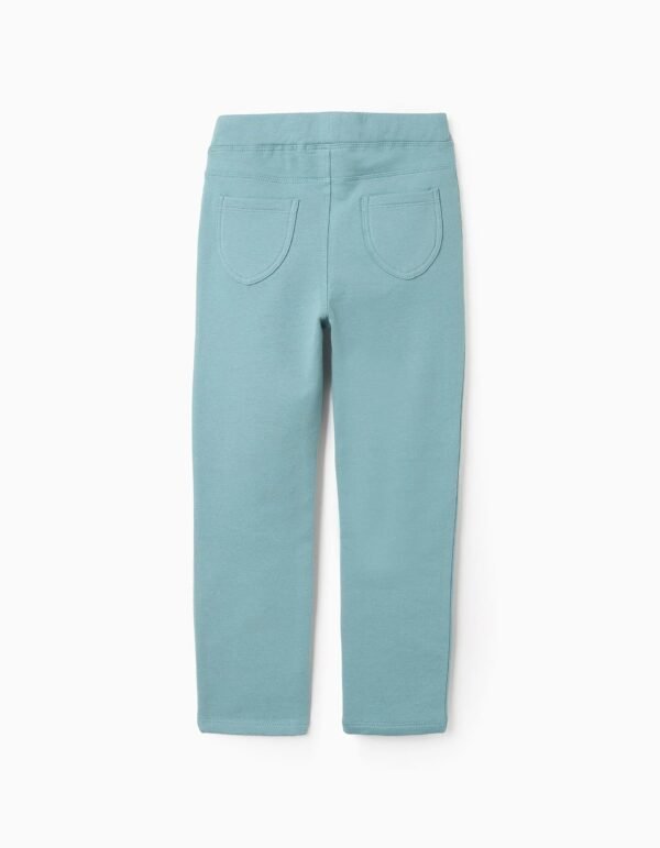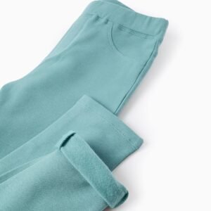 Jegging verde agua para niña, con interior perchado para mayor confort térmico. Cintura flexible, ajustable en el interior. Bolsillos decorativos en los laterales y bolsillos funcionales atrás. ¡Un esencial del armario, práctico y acogedor!