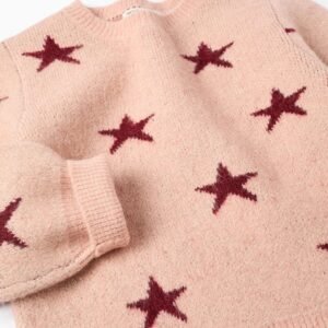 Este jersey de punto rosa cuenta con estrellas bordadas en color burdeos que hacen que cada momento sea aún más especial. Contiene hilos de lúrex plateados y dorados, para darle un toque elegante. Perfecta para otoño e invierno, esta pieza es ideal para las actividades diarias, así como para ocasiones más especiales. ¡Una elección perfecta para complementar cualquier look!