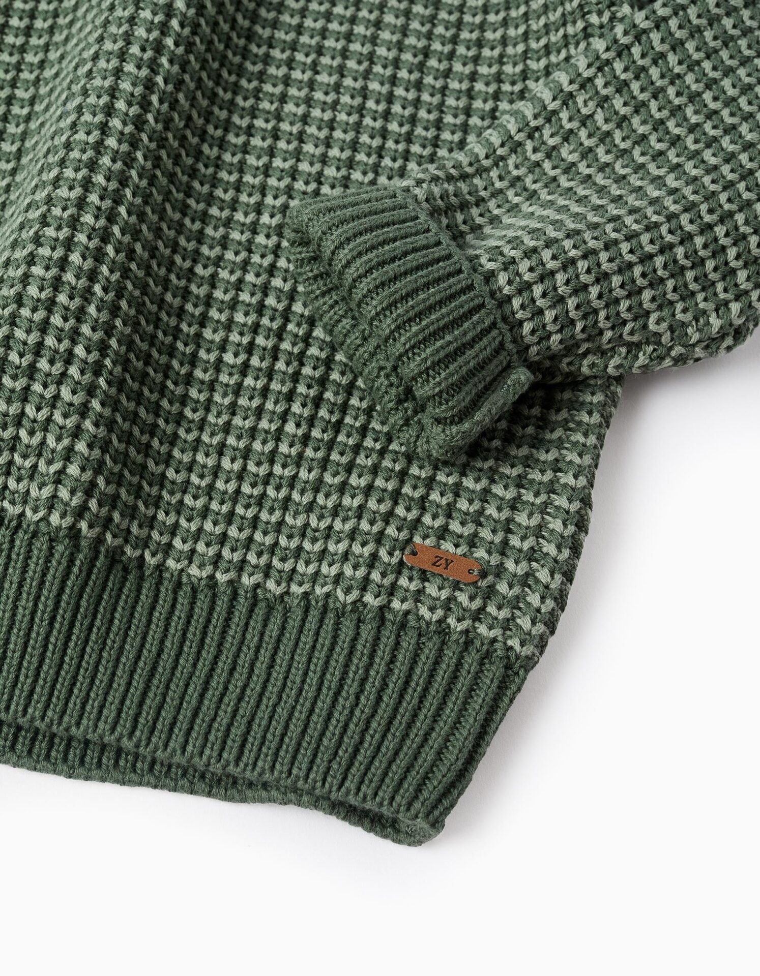 Jersey de punto bicolor para niño, 100 % algodón, en tonos verdes. Extremos acanalados para un ajuste perfecto. ¡Suave y cómodo!