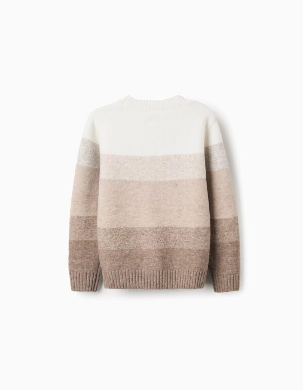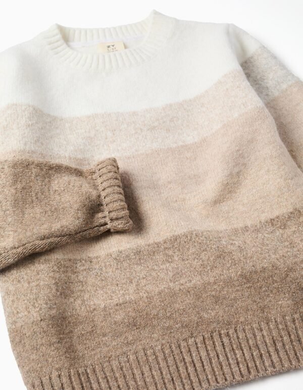 Descubre el jersey perfecto para tu niño, una pieza que combina comodidad y elegancia. En tonos degradé de beige y blanco es perfecto para los días más fríos, lo que permite usarlo en varias ocasiones, desde un paseo por el parque hasta un evento familiar. Este jersey es la opción ideal para los padres que buscan calidad y estilo para sus hijos sin comprometer la comodidad.