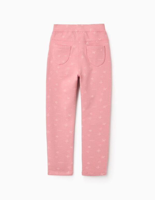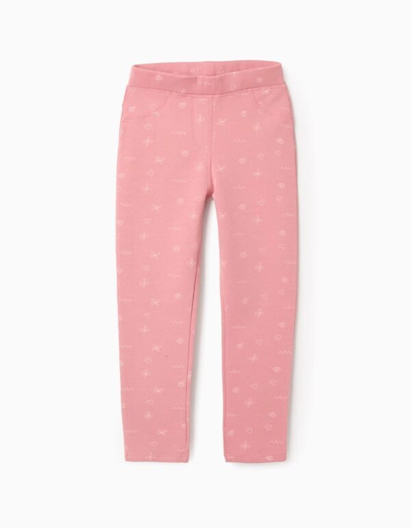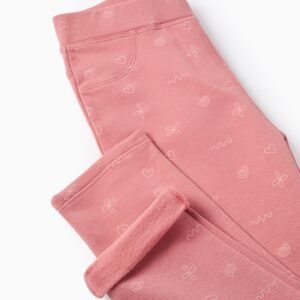 Jegging rosa de punto para niña, en algodón con un toque de elasticidad para mayor comodidad y libertad de movimiento. Con motivo diverso. Cintura elástica, ajustable en el interior con elásticos y botones. Bolsillos frontales decorativos y bolsillos traseros funcionales. ¡Una opción práctica y cómoda para el día a día!