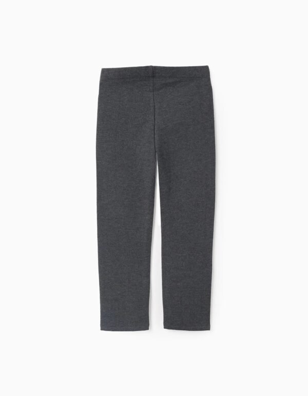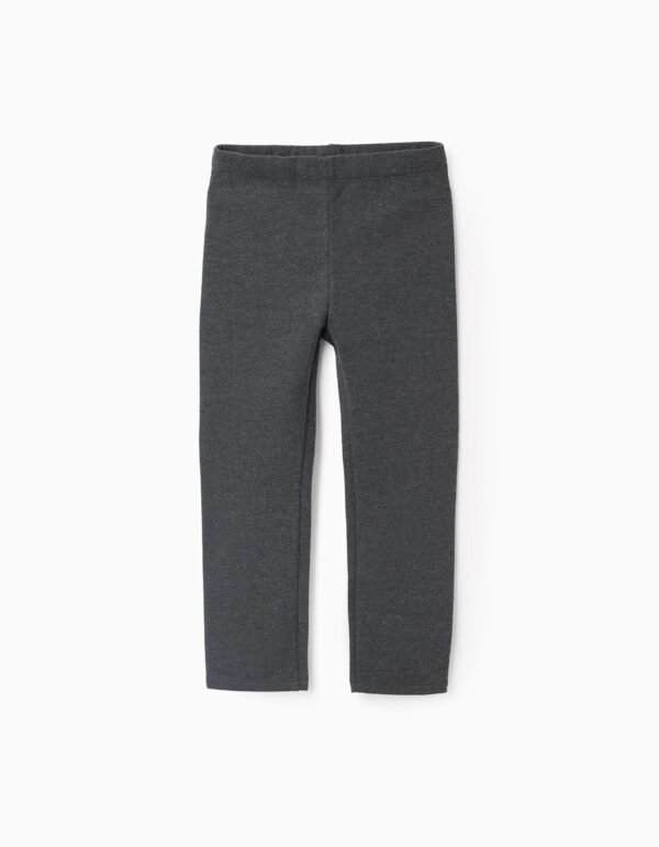 Mallas gris oscuro para niña, fabricadas en mezcla de algodón suave y elástico, con interior perchado para mayor confort térmico. Cintura elástica y cómoda, ajustable en el interior con elásticos y botones. ¡Un básico del armario!