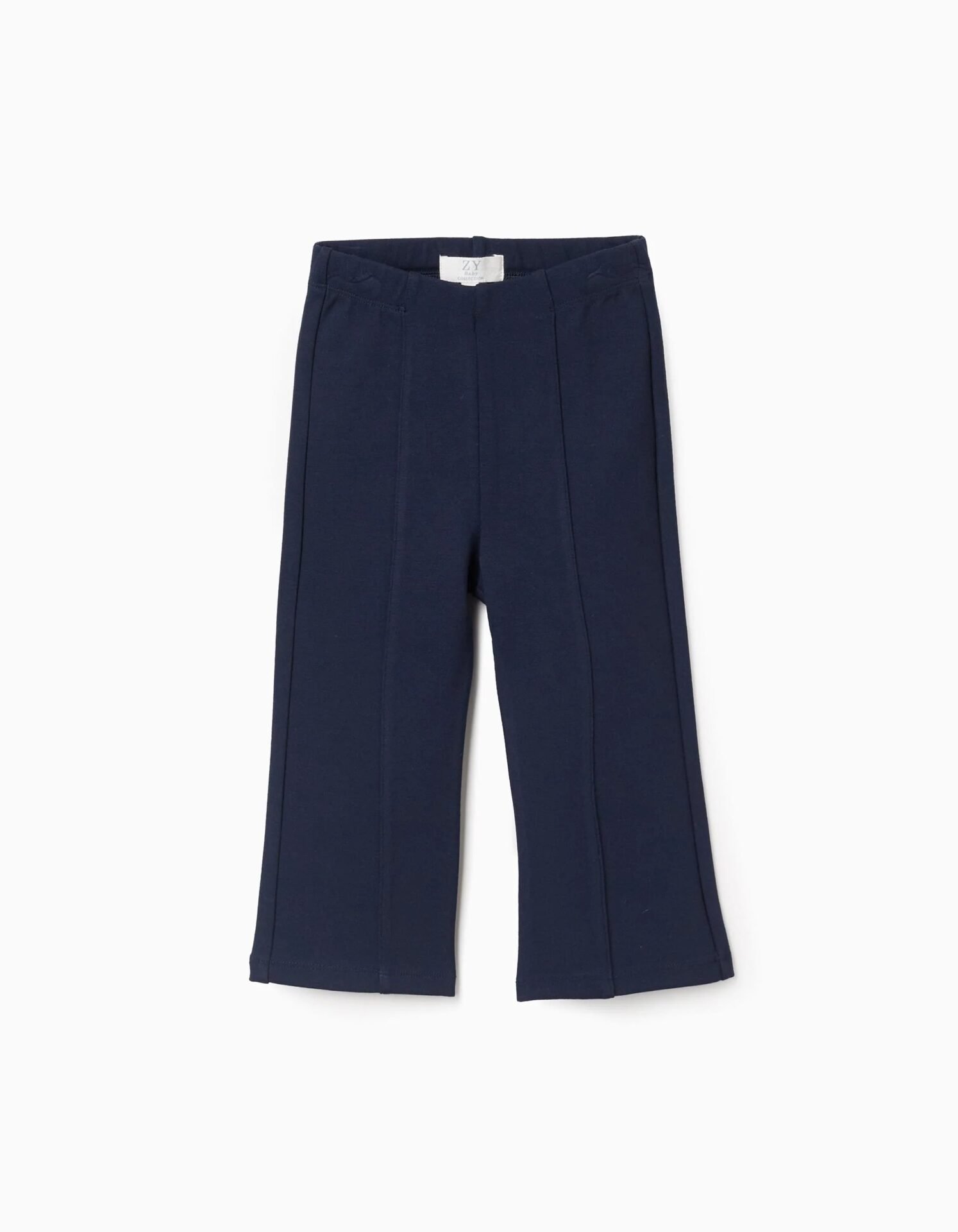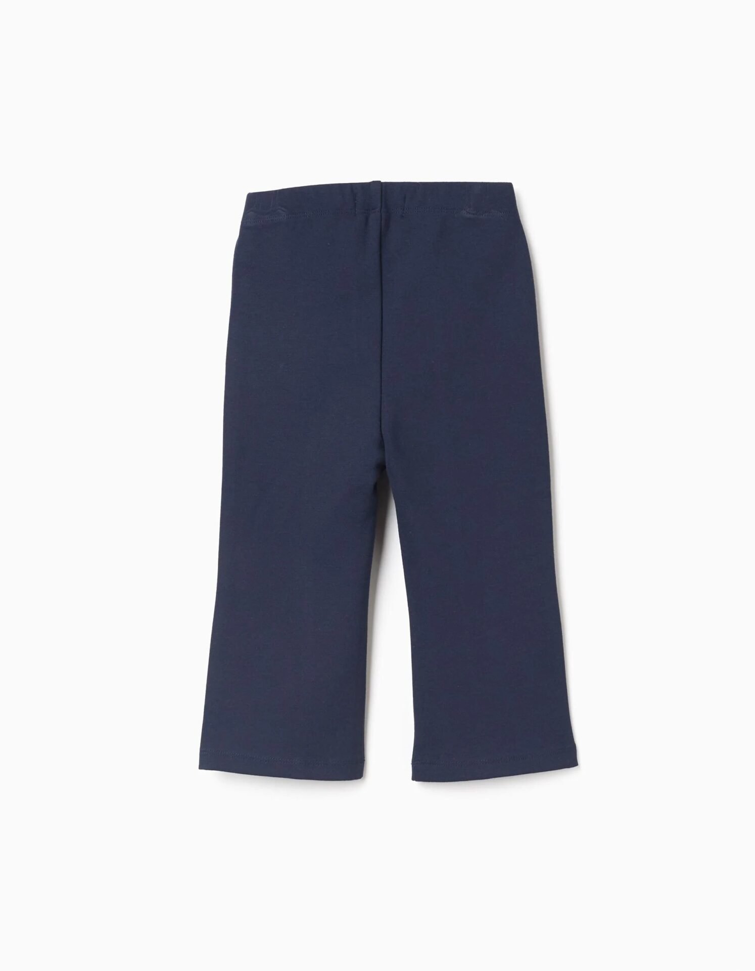 Mallas azul oscuro para bebé niña. En punto Roma, confeccionado en una mezcla de algodón, para un tacto suave y cómodo. Wide leg, modelo ancho y relajado. Costura frontal en el medio de la pierna. Cintura elástica y ajustable. Prácticas y cómodas, ¡perfectas para todos los días!