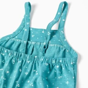 Este mono azul turquesa para bebé niña es una excelente opción para los días más cálidos. Fabricado en una tela suave, proporciona comodidad y libertad de movimiento para que tu niña juegue con tranquil