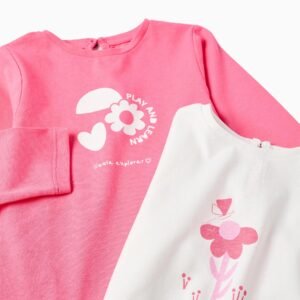 Este pack de dos camisetas de manga larga, una blanca y otra rosa, es perfecto para el día a día. Elaboradas de algodón, estas camisetas proporcionan un toque suave sobre la piel de tu bebé.