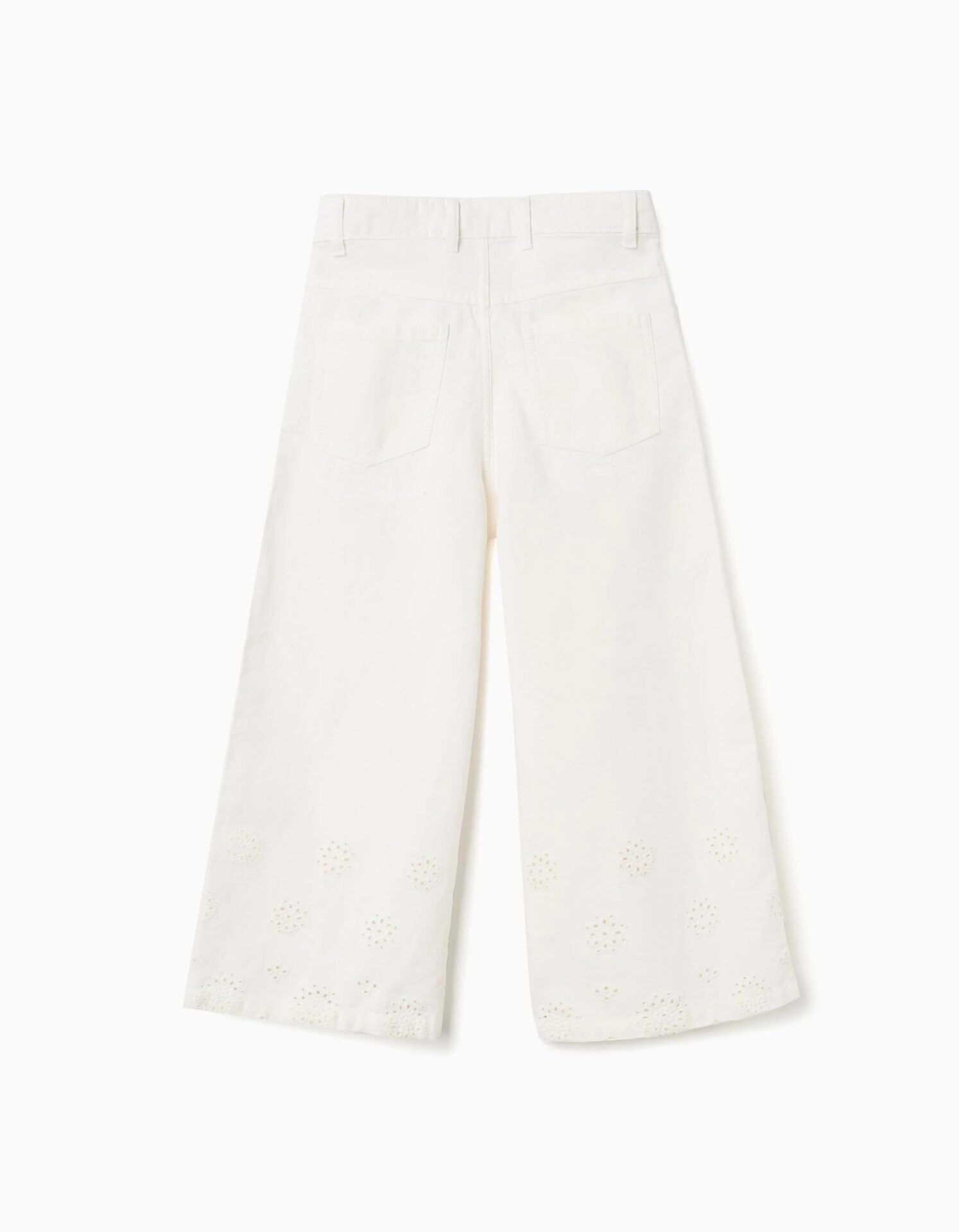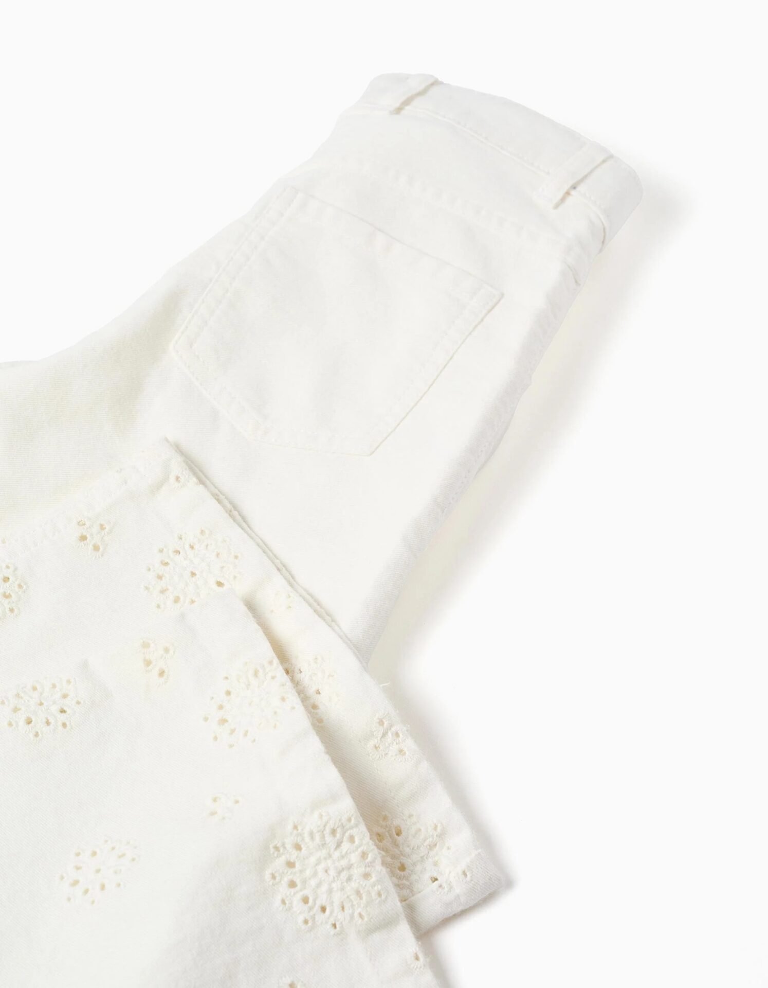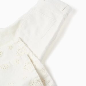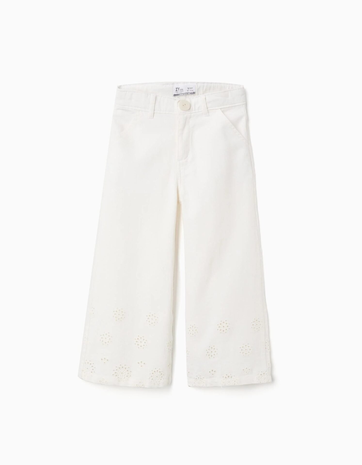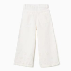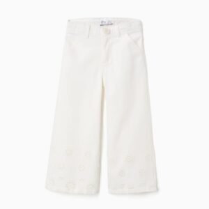 Estos pantalones beige claro son perfectos para las niñas amantes de la moda. Confeccionados en sarga, presentan detalles en bordado inglés que aportan un toque especial a cualquier look. Con un diseño práctico, estos pantalones combinan fácilmente con diversas blusas y camisetas de colores. ¡Una excelente opción para eventos familiares o para jugar con los amigos