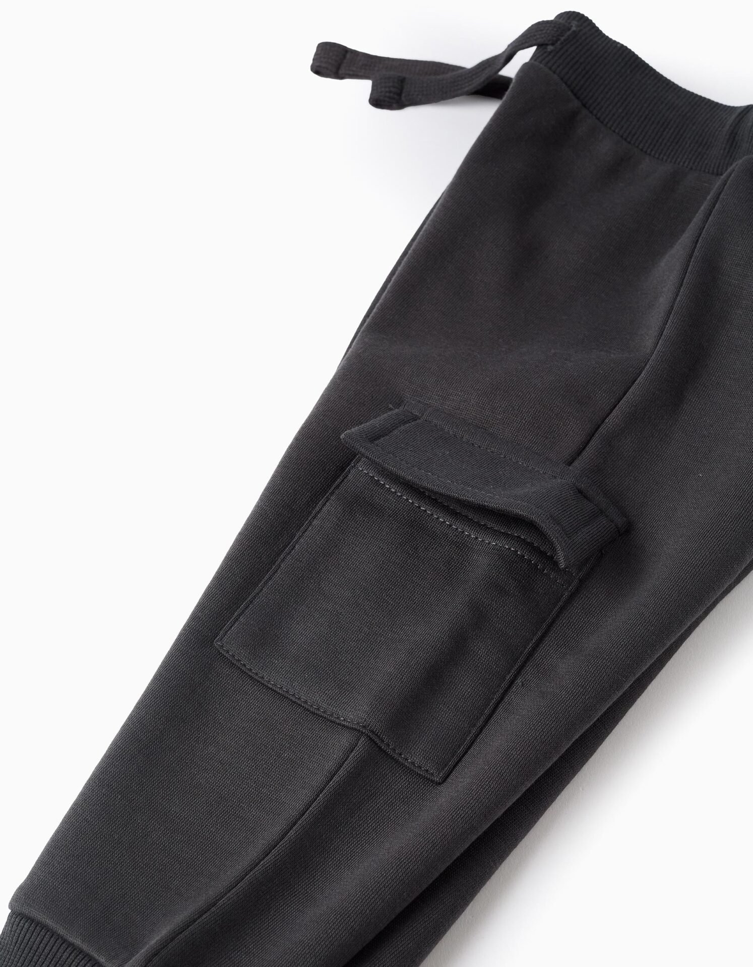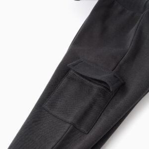 Pantalón jogger gris oscuro para bebé niño, con interior perchado para mayor confort térmico. Bolsillos cargo. Cintura acanalada y cómoda, con cordón, ajustable en el interior con elásticos y botones. Puños acanalados para un ajuste perfecto. Una opción práctica y cómoda para el día a día.