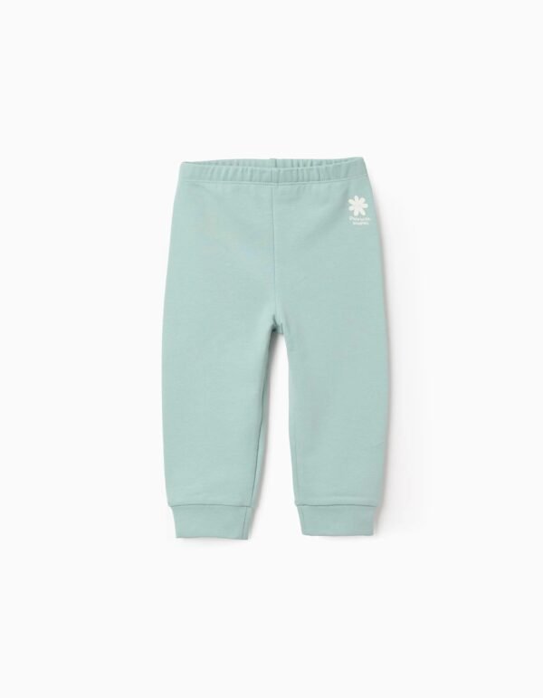 Pantalón jogger verde-agua para bebé niña, con interior perchado para mayor confort térmico. Cintura elástica y cómoda. Detalle estampado en el lateral. Dobladillos ajustados para un fit perfecto. ¡Para los looks del día a día!