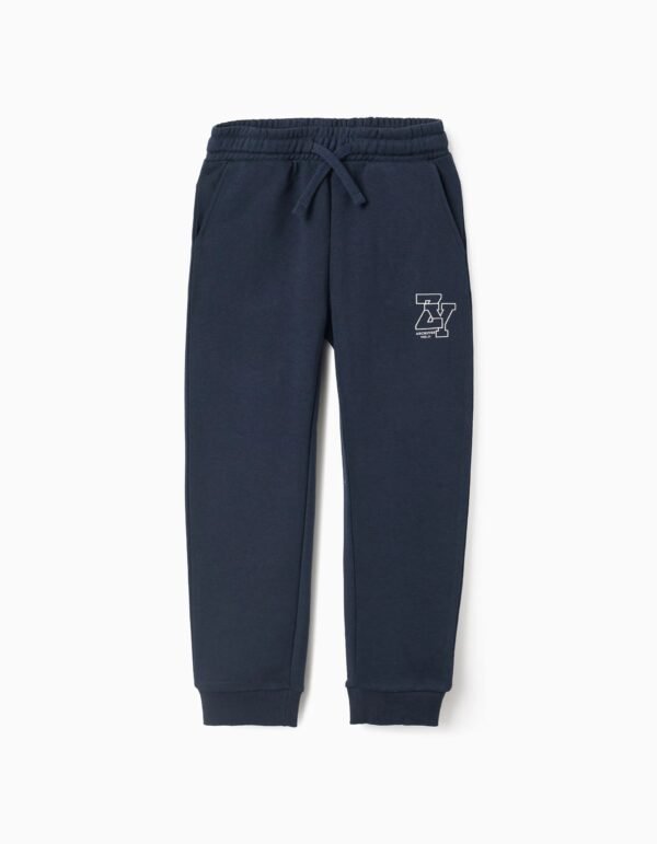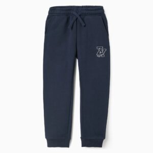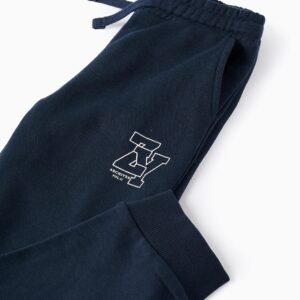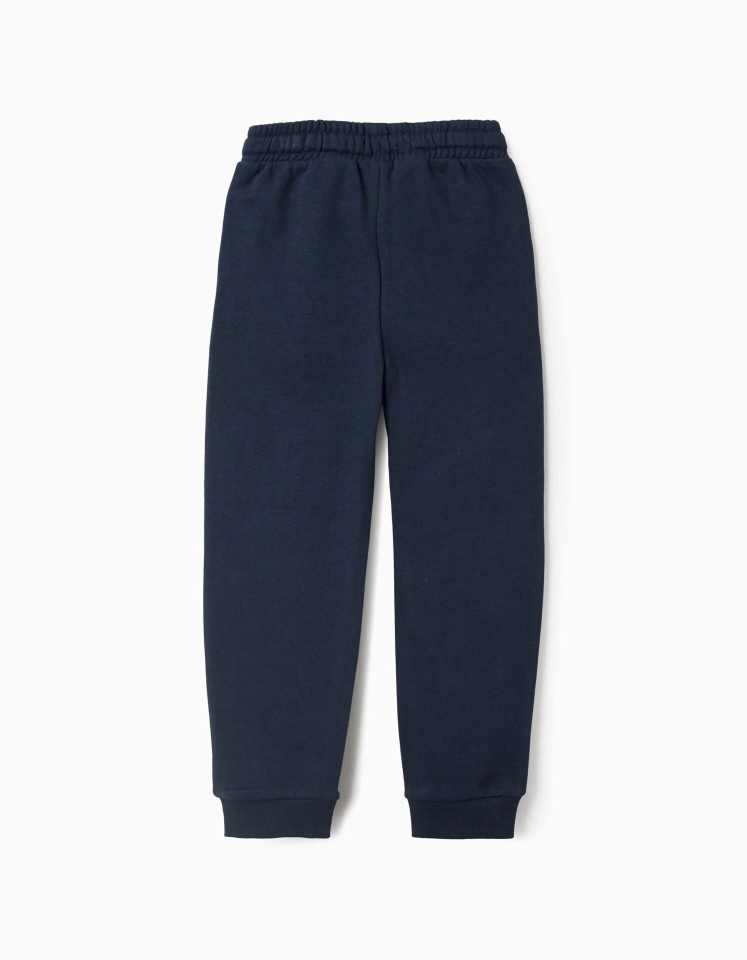 Joggers azul oscuro para niño, en una suave y cómoda mezcla de algodón. Detalle estampado. Bolsillos laterales. Cintura elástica con cordón. Bajos entallados para un ajuste perfecto.