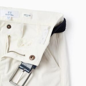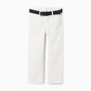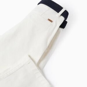 Pantalón chino ajustado de sarga con cinturón para niño, blanco