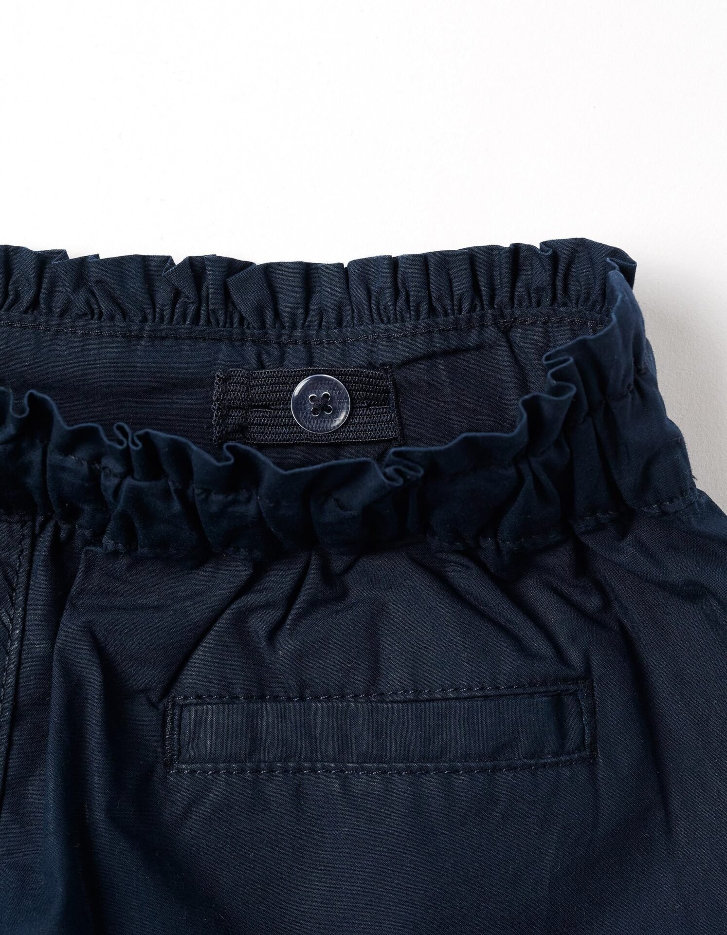 Cintura paperbag elástica, ajustable por dentro con elásticos y botones