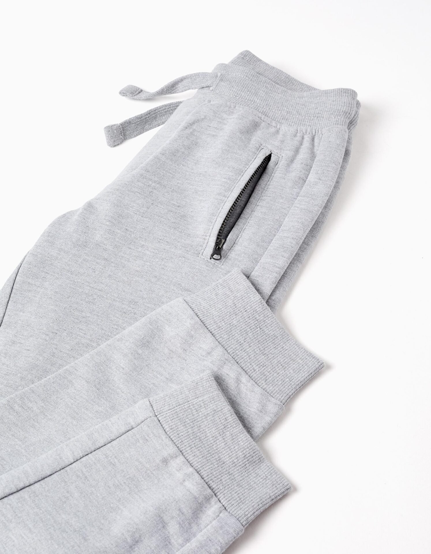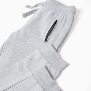 Pantalón jogger gris para niño, en mezcla de algodón suave y confortable. Slim fit. Bolsillos laterales sellados y bolsillo trasero abierto. Cintura y puños acanalados y flexibles, para máximo confort. We Care: artículo con certificado Oeko-Tex Standard 100, que garantiza la ausencia de sustancias nocivas o irritantes para la piel.