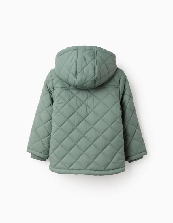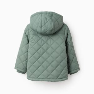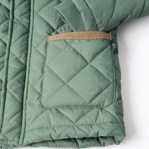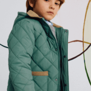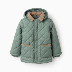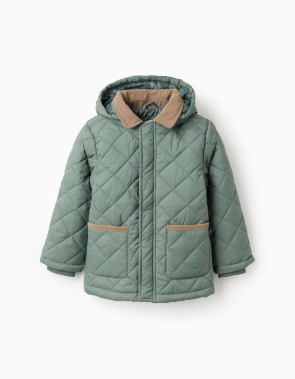 Parka acolchada verde oscura para niño con capucha desmontable. Bolsillos delanteros. Detalles de pana marrón en el cuello y los bolsillos para un toque más clásico. Cierre de cremallera y botones automáticos para vestirla fácilmente. Puños interiores de canalé para un ajuste perfecto. Etiqueta interior para el nombre del niño. We Care: esta prenda está rellena de poliéster reciclado. El abrigo ideal para los meses de invierno.