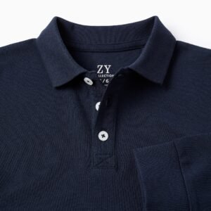 Polo de manga larga azul oscuro para niño, fabricado en piqué 100% algodón. Puños acanalados para un ajuste perfecto. Etiqueta interior estampada para no irritar la piel. Un esencial del armario. We Care: artículo con certificado Oeko-Tex Standard 100, que garantiza la ausencia de sustancias nocivas o irritantes para la piel.