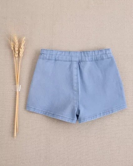 Short de bebé niño azul con botones en laterales, goma trasera ajustable, cómodo y práctico para vestir a tu pequeño con estilo en cualquier ocasión.