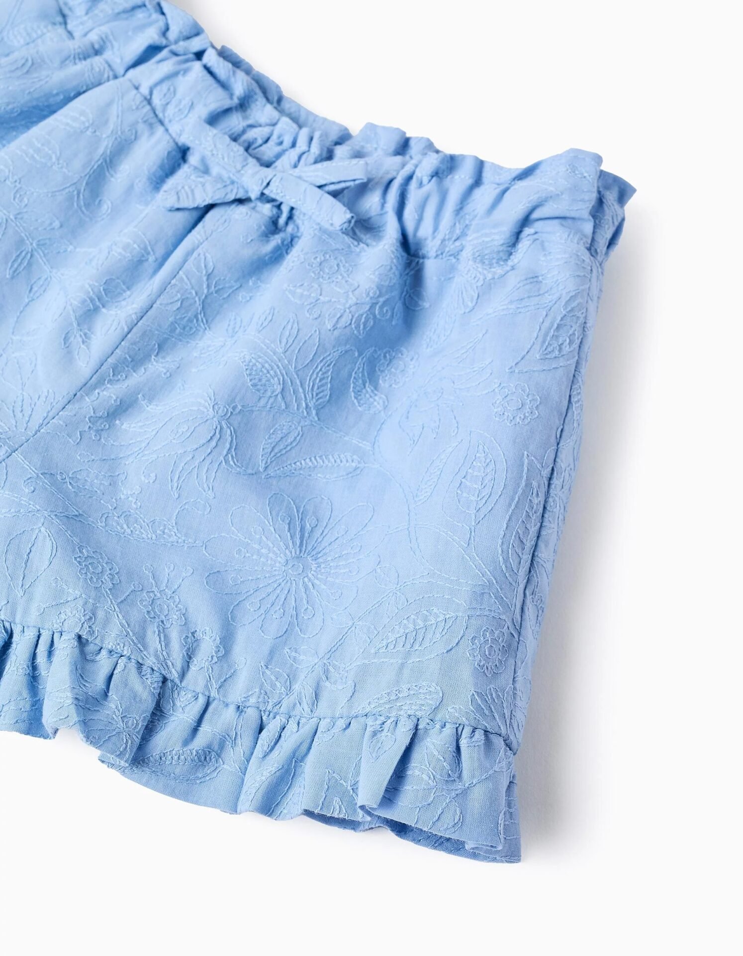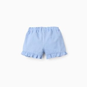 Los shorts perfectos para tu bebé niña, diseñados para proporcionar comodidad y libertad de movimiento en todo momento. Fabricado en algodón suave, este pantalón corto azul claro destaca por el delicado bordado. Ideal para los cálidos días de verano, combina fácilmente con varias blusas y camisetas. Es perfecto para eventos familiares o para jugar en el parque, asegurando que tu bebé esté siempre fresca.