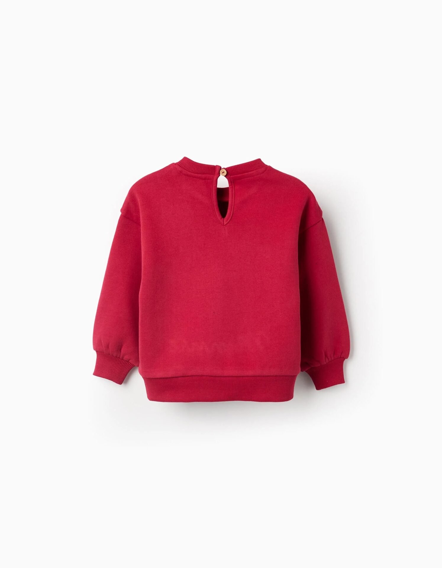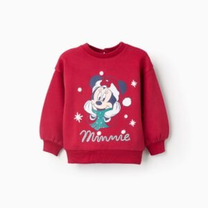 Sudadera roja perchada para bebé niña, con estampado frontal de Minnie con detalles de cuerda en relieve. Extremos acanalados para un ajuste perfecto. Botón en la espalda para vestir fácilmente. ¡Una sudadera práctica y acogedora, perfecta para la época navideña!