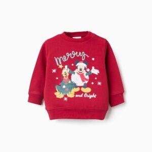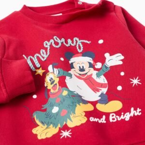 Sudadera roja para bebé niño, con estampado navideño de Mickey y Pluto. Bordado frontal en relieve. 100% algodón, con interior perchado para un mayor confort térmico. Puños y bajo de canalé para un ajuste perfecto. Botones de presión laterales para vestirlo fácilmente. Acogedor y perfecto para los fans de Mickey y sus amigos.