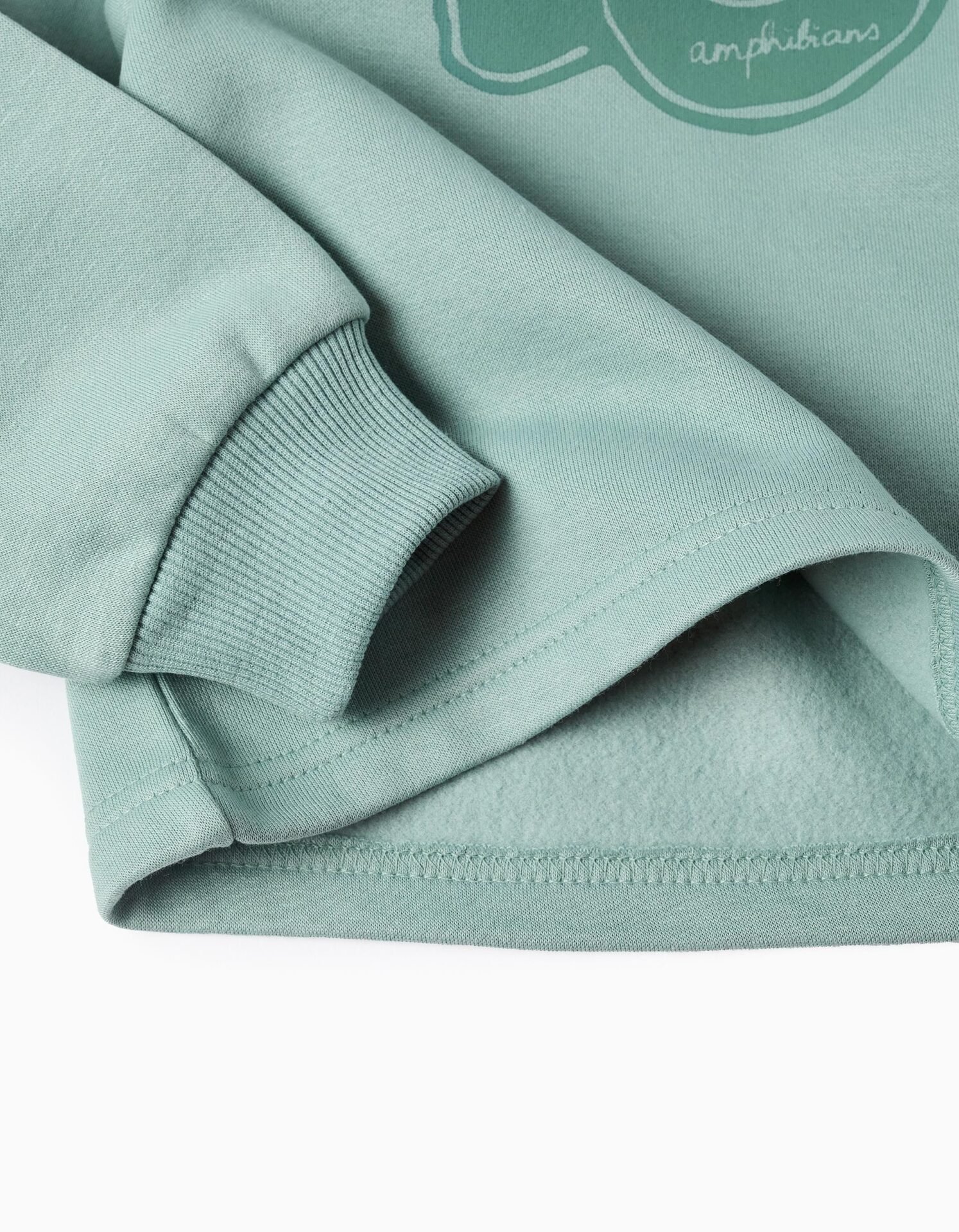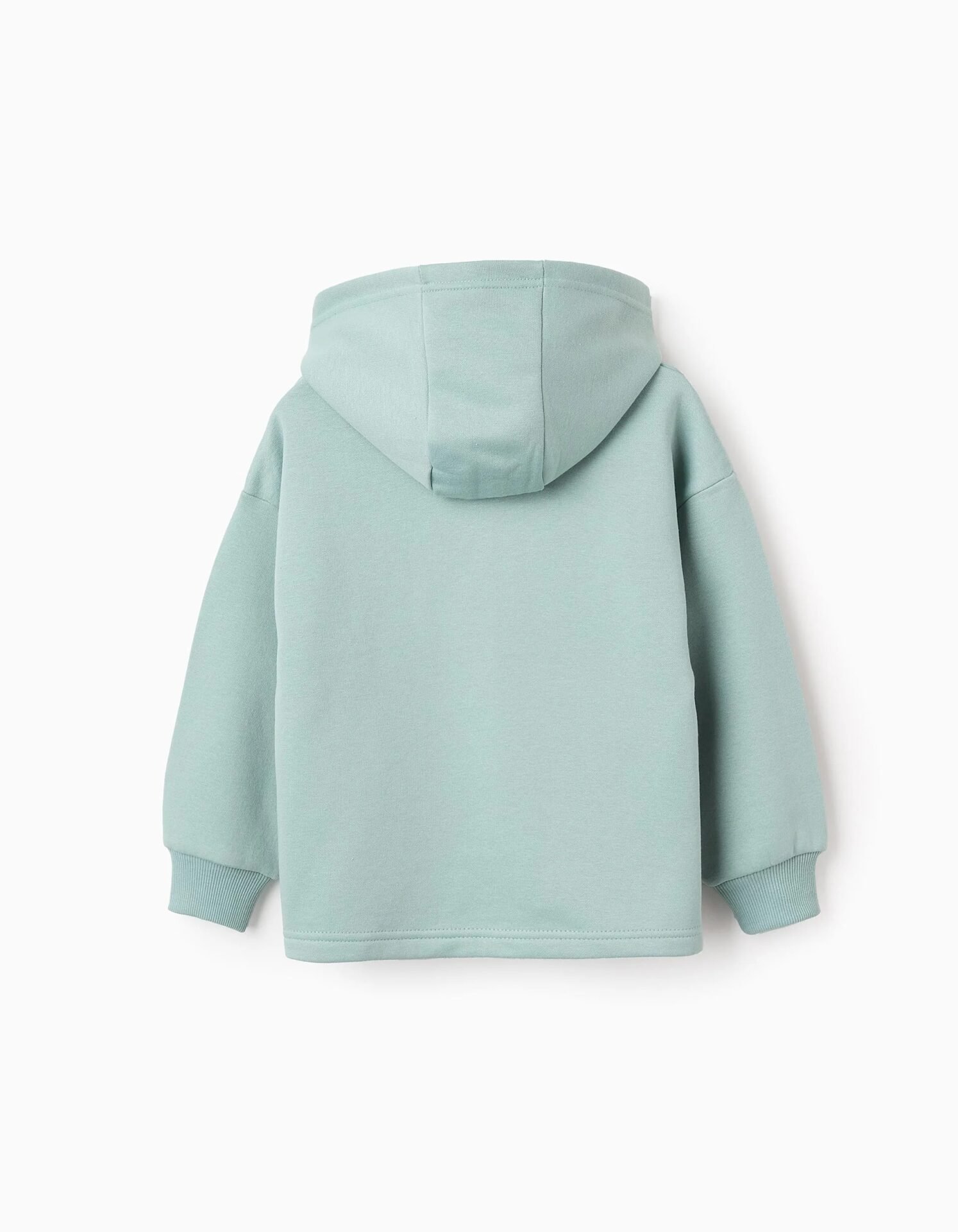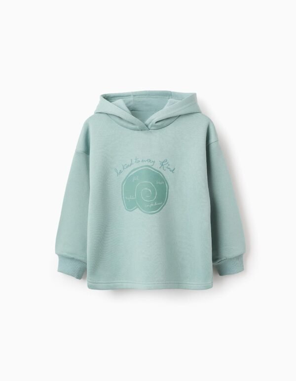 Sudadera perchada verde agua para niña, con capucha. Estampado frontal con detalles en relieve. Hombros caídos para un ajuste más relajado. Puños acanalados para un ajuste perfecto. Efecto fluido, para un estilo urbano y relajado. ¡We Care: artículo con certificado Oeko-Tex Standard 100, que garantiza la ausencia de sustancias nocivas o irritantes para la piel!