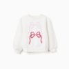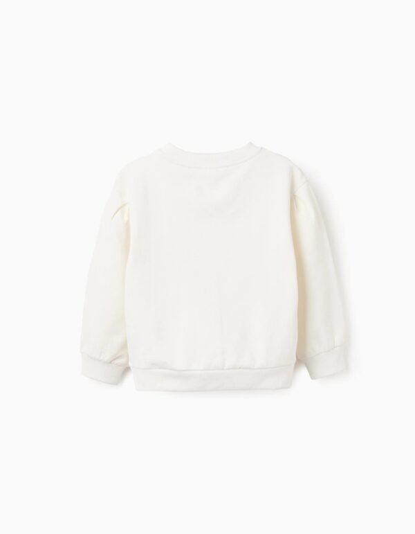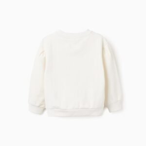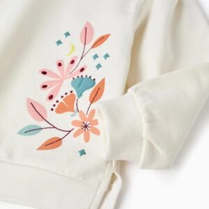 Sudadera blanca perchada para niña, en algodón con un toque de elasticidad para mayor comodidad y libertad de movimientos. Estampados y bordados de flores en el lateral. Hombros caídos. Extremos acanalados para un ajuste perfecto. Pequeñas aberturas en la base. ¡Una opción cómoda y femenina!