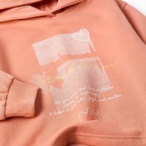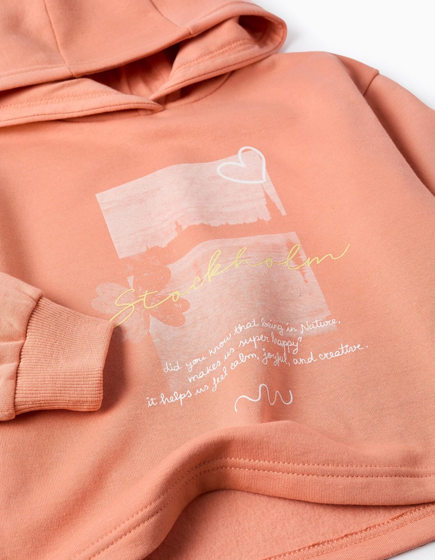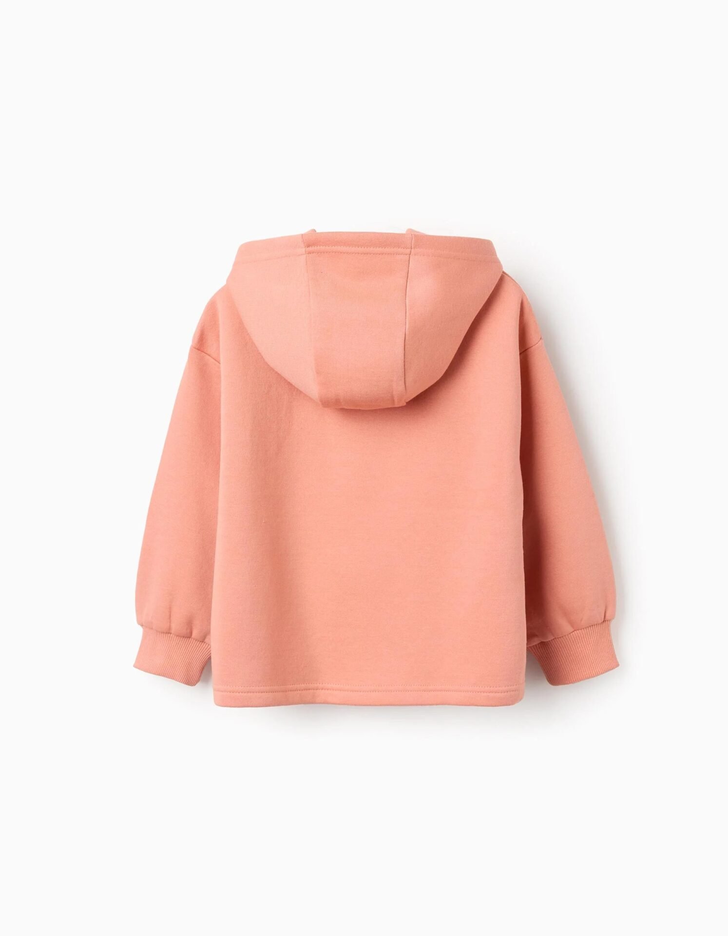 Sudadera coral con capucha para niña, con interior perchado para mayor confort térmico. Estampado frontal y hombros caídos para un estilo urbano y relajado. Puños acanalados para un ajuste perfecto. Corte fluido. Una sudadera suave y acogedora, perfecta para looks del día a día. We Care: artículo con certificado Oeko-Tex Standard 100, que garantiza la ausencia de sustancias nocivas o irritantes para la piel.