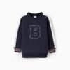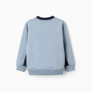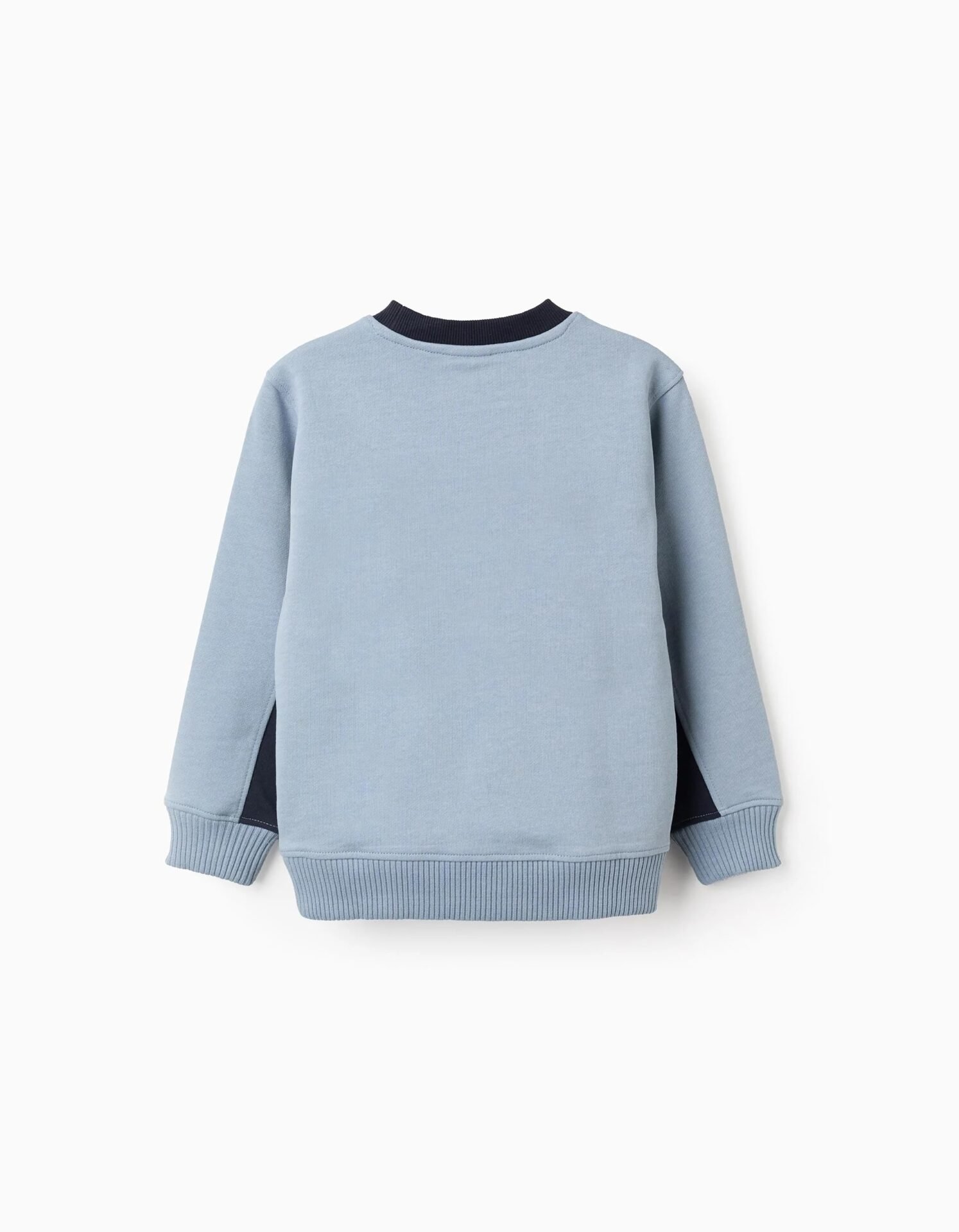 Sudadera azul 100 % algodón para niño. Rayas en contraste en blanco, naranja y azul oscuro. Extremos acanalados para un ajuste perfecto. ¡Una sudadera multifacética, perfecta para cualquier estilo!
