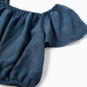 Prepara a tu niña para los días soleados con este top azul oscuro, que ofrece suavidad y transpirabilidad para el uso diario. Ideal para reuniones familiares o paseos junto al mar, asegura comodidad y facilidad de movimiento. Esta pieza versátil combina sin esfuerzo con una variedad de pantalones y shorts, convirtiéndose en un esencial del armario de verano.
